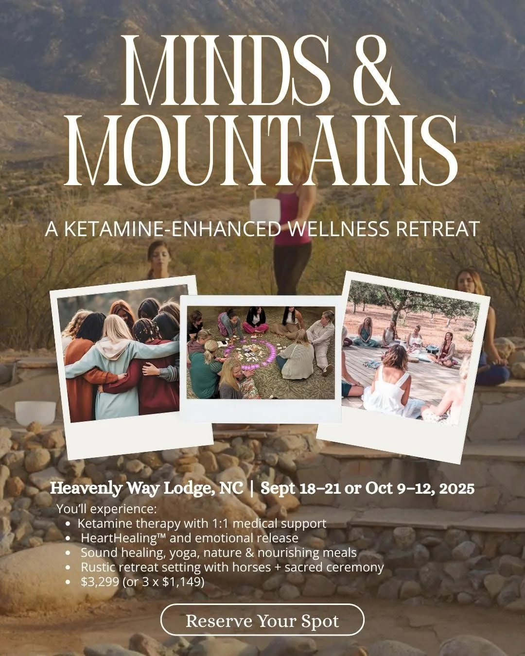 Join us for a 4 day weekend retreat of healing, connecting and collective awakening with the evidence-backed power of Ketamine. Lauren joins forces with board certified physician Dr. Judith Borger to bring this potent spirit medicine to the rolling hills of North Carolina, together with breathwork, sound healing and yoga.